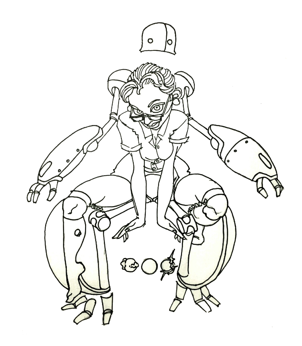 (la imagen representa a una muchacha vestida de tecnológico y un «robot» detrás. Como en «Appleseed», ella se mete dentro del robot y éste se hace una bola (la BOLA del juego), con ella dentro ).